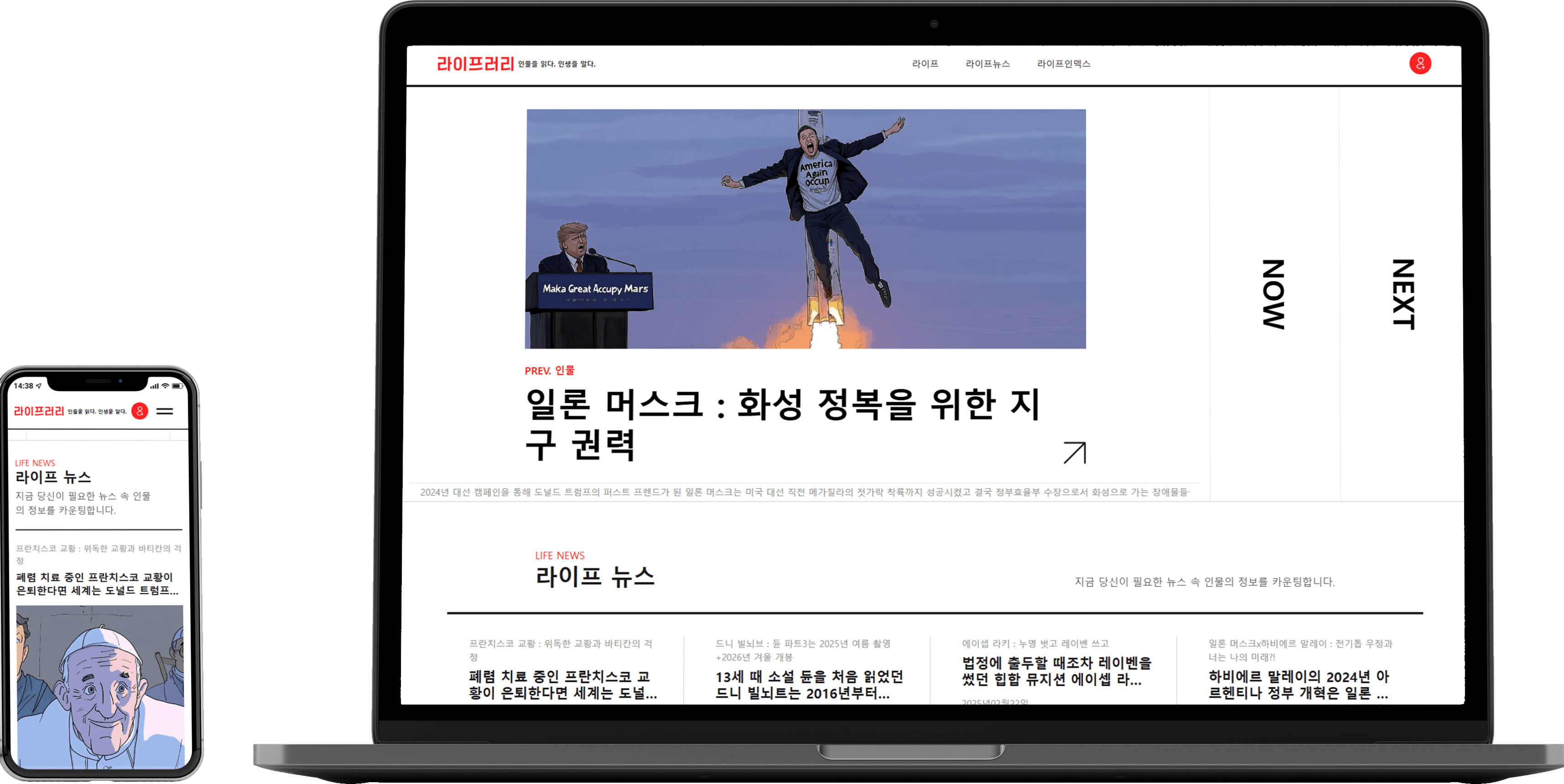 유명 인사들의 최신 뉴스, 다큐멘터리, 심층 에피소드를 제공하는 인물 도서관 서비스